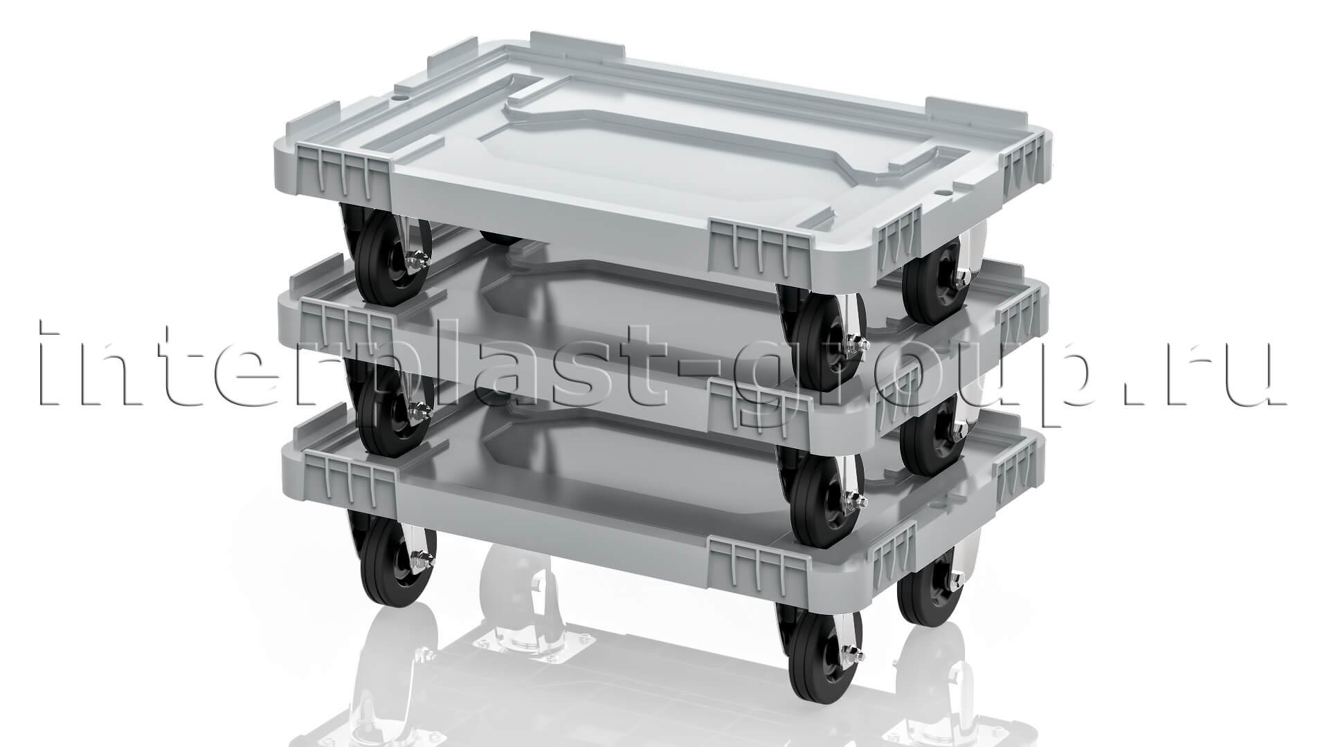 Тележка пластиковая сплошная без тормозов серая в Рославле