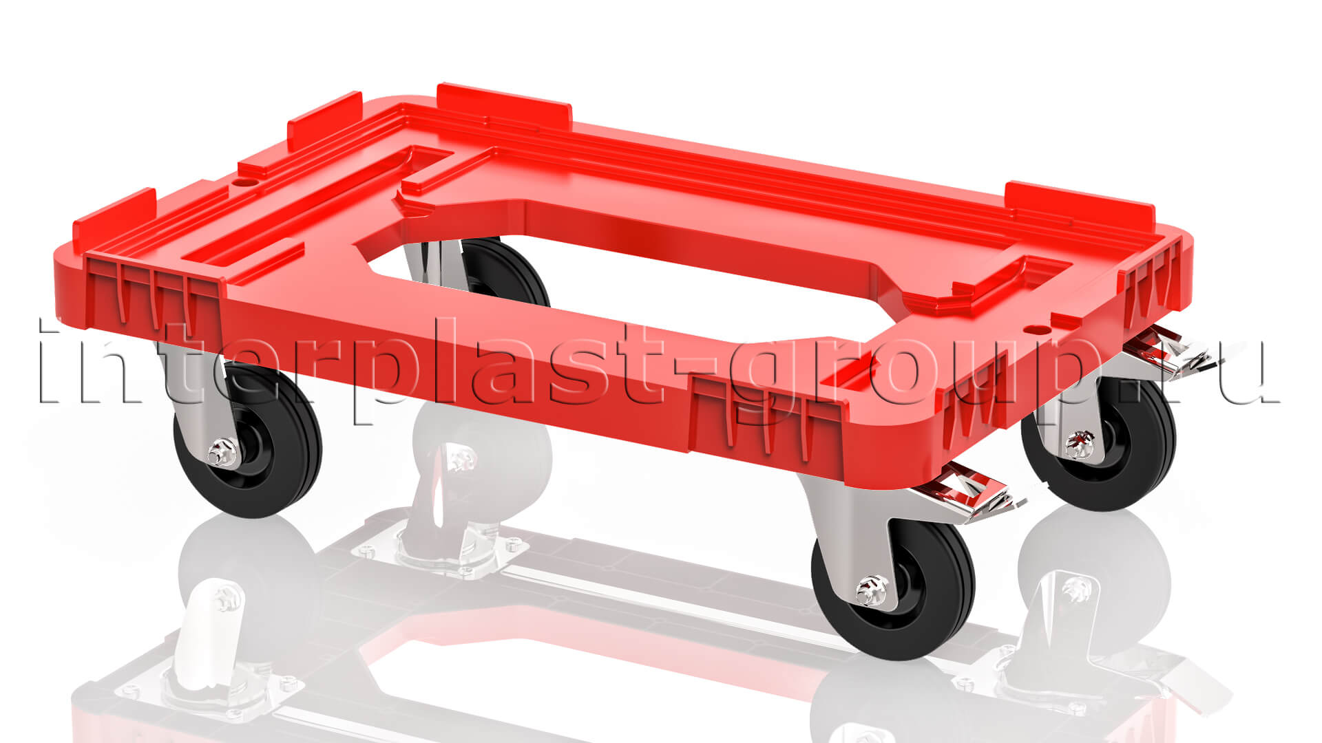 Конструкция тележки разработана с особым акцентом на прочность и надежность. Она сплошная и имеет усиленное место для захвата, позволяющее удобно манипулировать тележкой крючком. Большое количество ребер жесткости обеспечивает ей допустимую статическую и динамическую нагрузку до впечатляющих 300 кг.