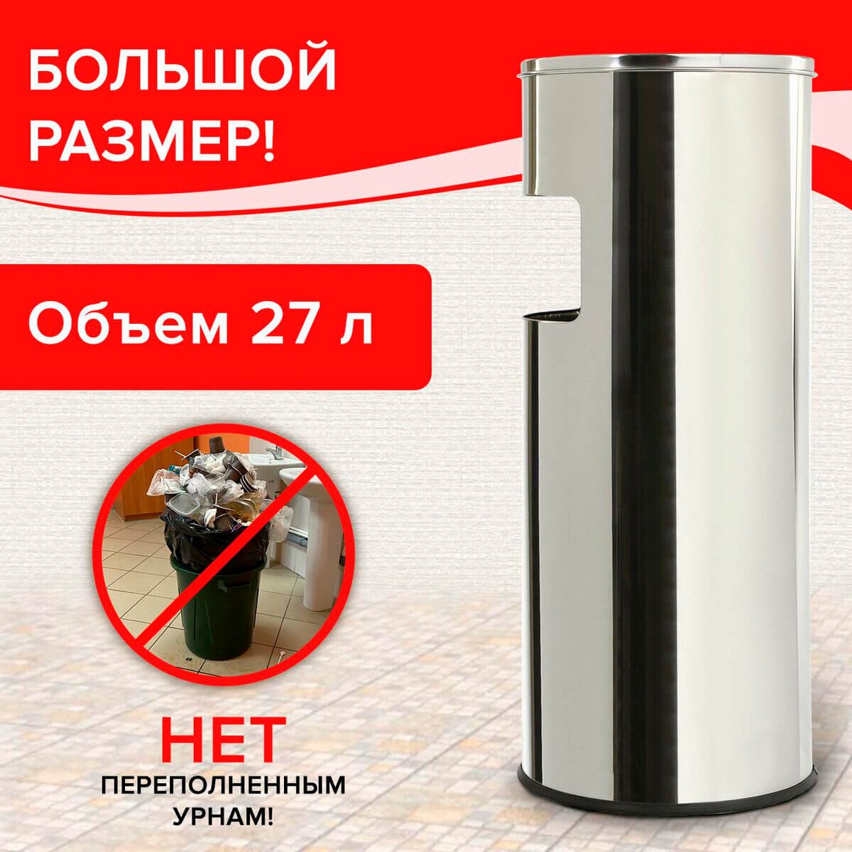 Урна с пепельницей 27 л, нержавеющая сталь, зеркальная, LAIMA PROFESSIONAL в Рославле